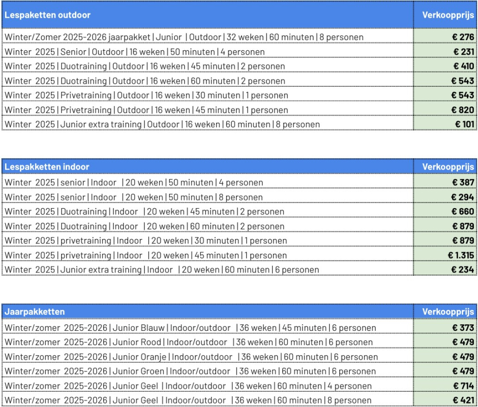 We zijn deze periode de zomertrainingen nog aan het afronden maar vanaf 29 september starten we de trainingen voor het najaar en de winterperiode weer op. Schrijf je nu dus snel in voor de nieuwe lessen serie. Inschrijven hiervoor kan t/m 14 september.
