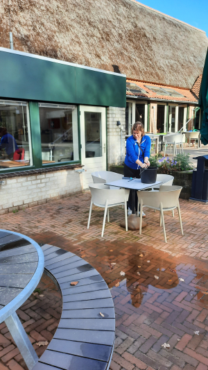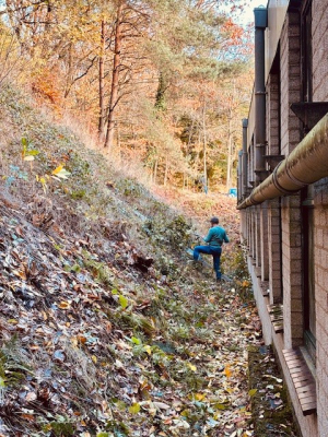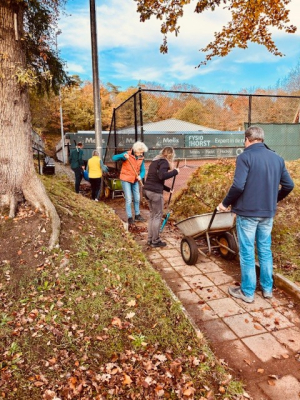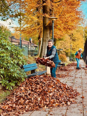 We hebben veel afgevallen blad geruimd, alle ramen van het clubhuis zijn van binnen en buiten gewassen, de kelder onder de keuken is opgeruimd en er is heel veel begroeiing rondom de hal (brandgevaarlijk) weggehaald.