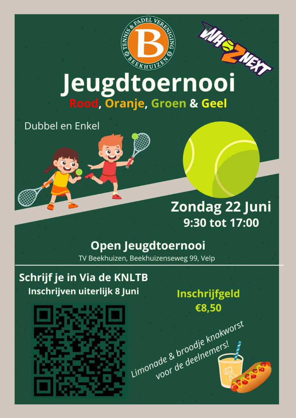 Schrijf je snel in voor leuke wedstrijden tijdens het open Jeugdtoernooi op Beekhuizen. De datum van inschrijving zal met enkele dagen verlengd worden. Hier kun je je inschrijven. Tot op de baan! Het WhoZnext team