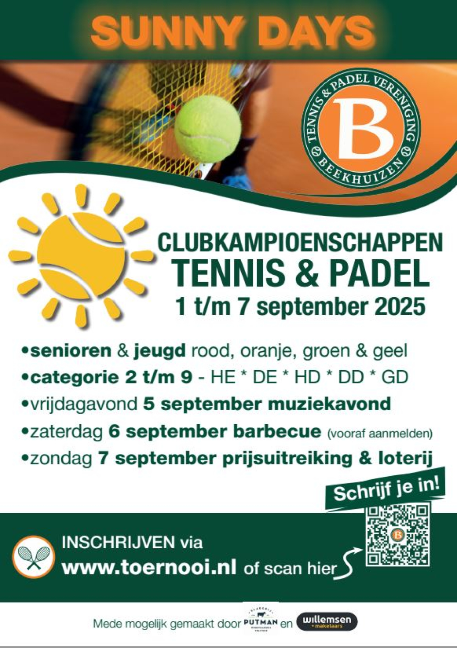 Tijdens deze warmste dagen van het jaar is het DAAN Open in volle gang. Er zijn meerdere voorzorgsmaatregelen genomen om goed met de hitte te kunnen omgaan. Met in het voorweekend de Junioren Tour en deze week het open- en NRT toernooi doen er bijna 700 spelers mee. Dat betekent dat het toernooi met afstand het grootste toernooi is van heel Gelderland. Super om te zien dat het toernooi ook dit jaar weer een heel groot succes is. De ervaren toernooicommissie weet er ieder jaar weer een feestje van te maken met een gevarieerd weekprogramma met mooie extra’s. Kom vooral vrijdagavond naar de Spaanse avond met lekkere hapjes, muziek en Spaanse drankjes of kom dit weekend naar tennis en padel kijken op alle niveaus. Zondagmiddag is de prijsuitreiking waar we mooi nieuws bekend zullen maken.